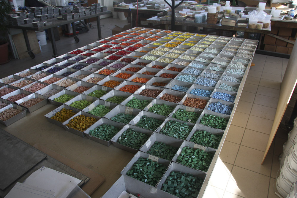 Pochi sanno che per la realizzazione di un metro quadrato di mosaico servono da 10.000 a 20.000 tessere tutte spezzate e posate ad una ad una. Un lavoro certosino che dà come risultato un prodotto di grande bellezza, che resta inalterato nel tempo, non si rovina e non perde l’intensità e la brillantezza cromatica del colore.