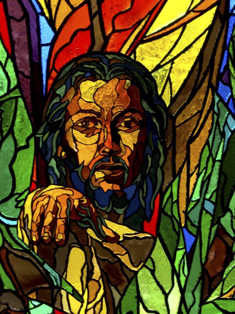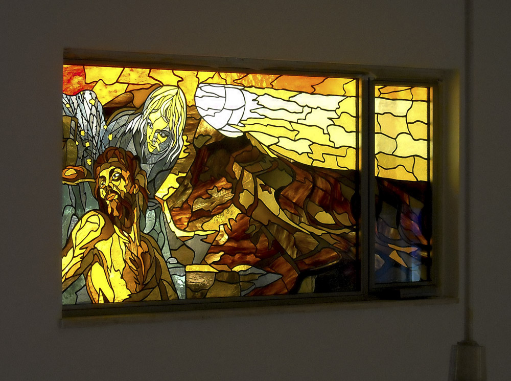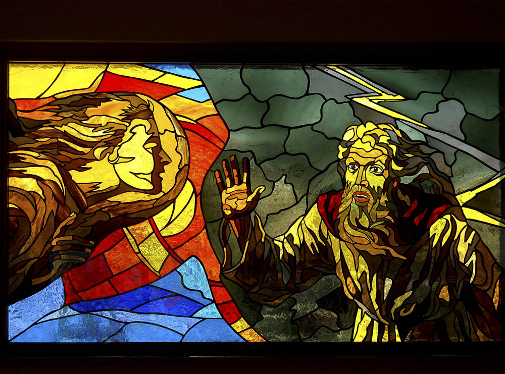 In funzione delle esigenze e caratteristiche del bozzetto, i vetri della composizione vengono scalpellati sui perimetri ed alcuni sfogliati in superficie, ricavando diverse vibrazioni di luminosità del colore.
