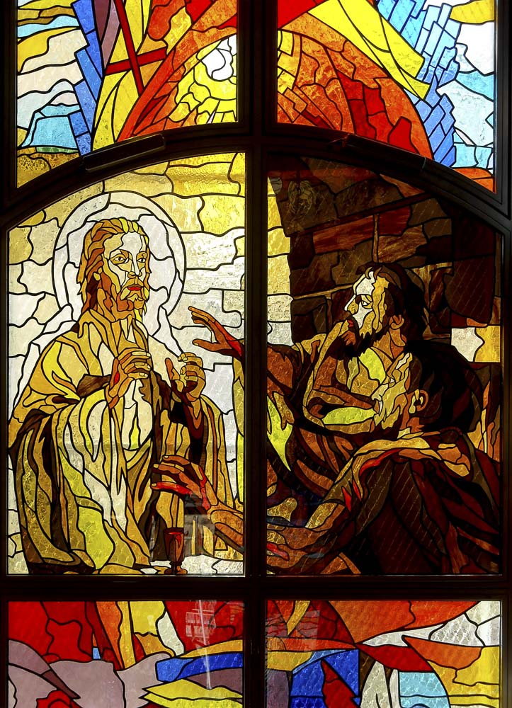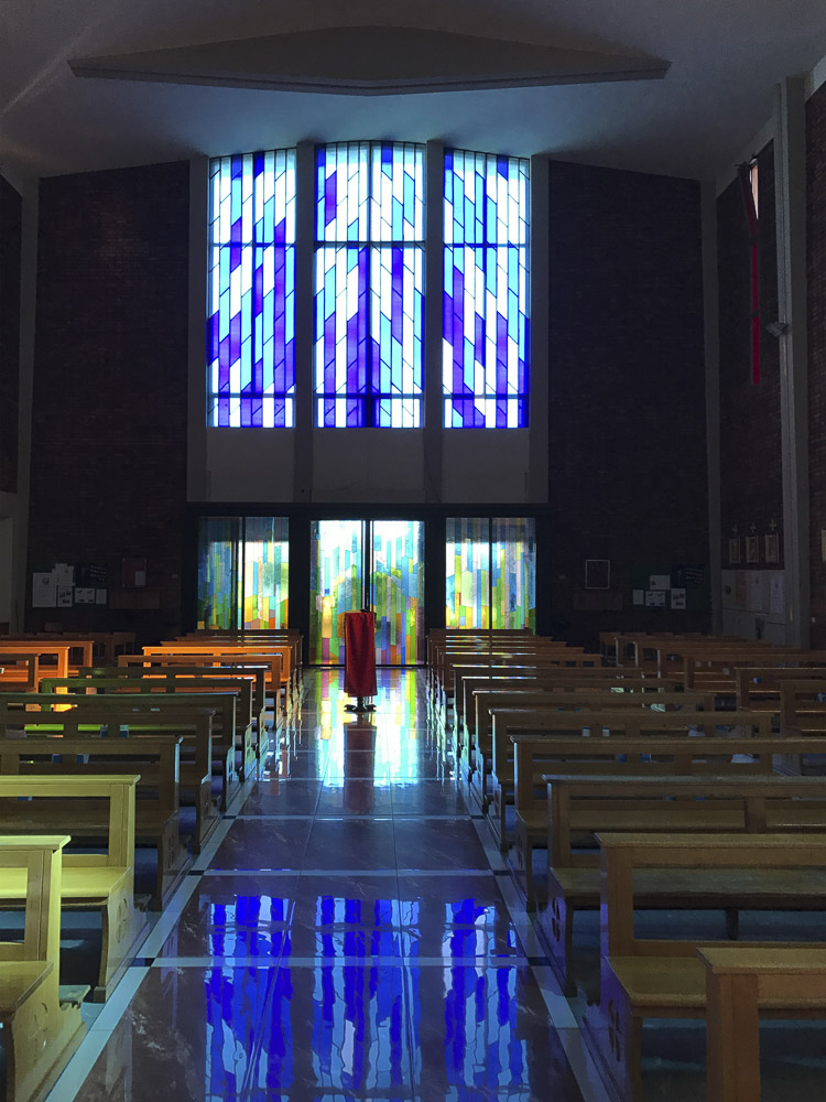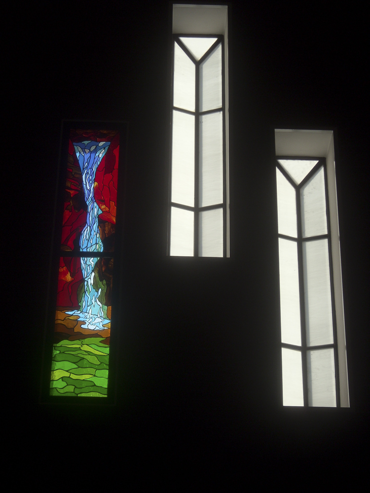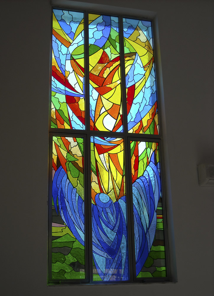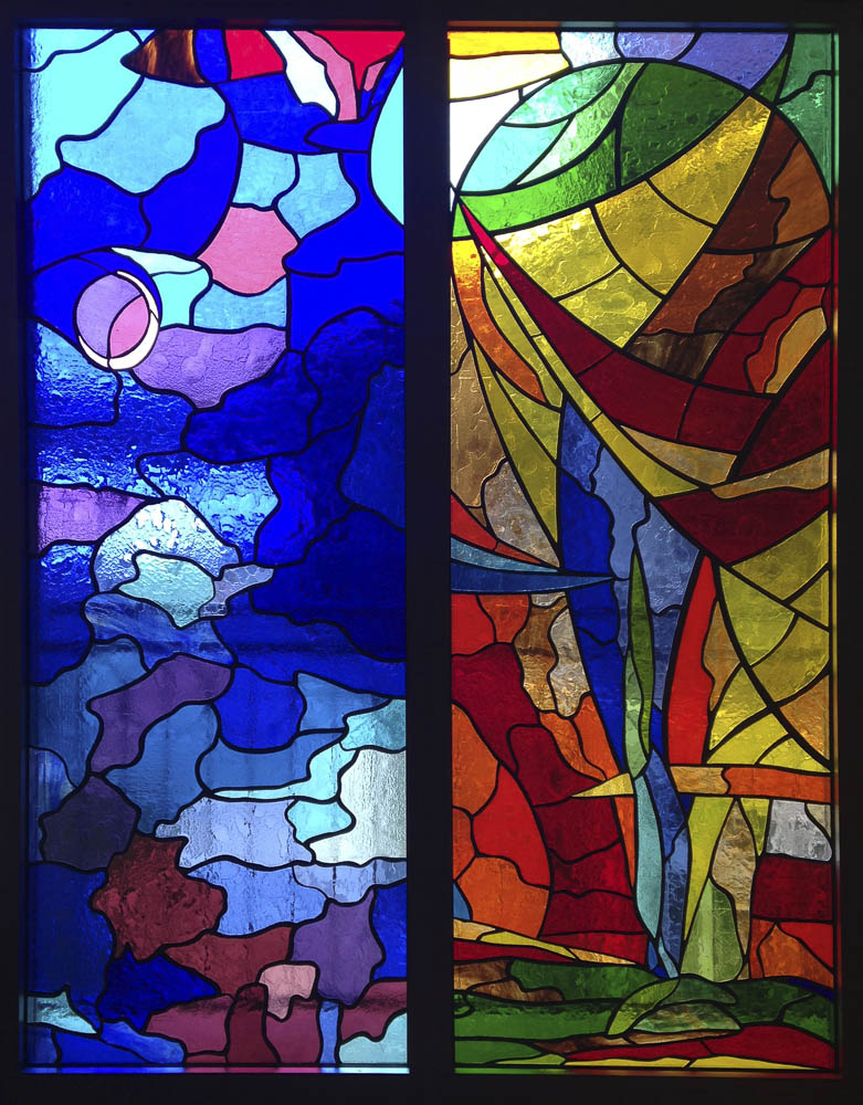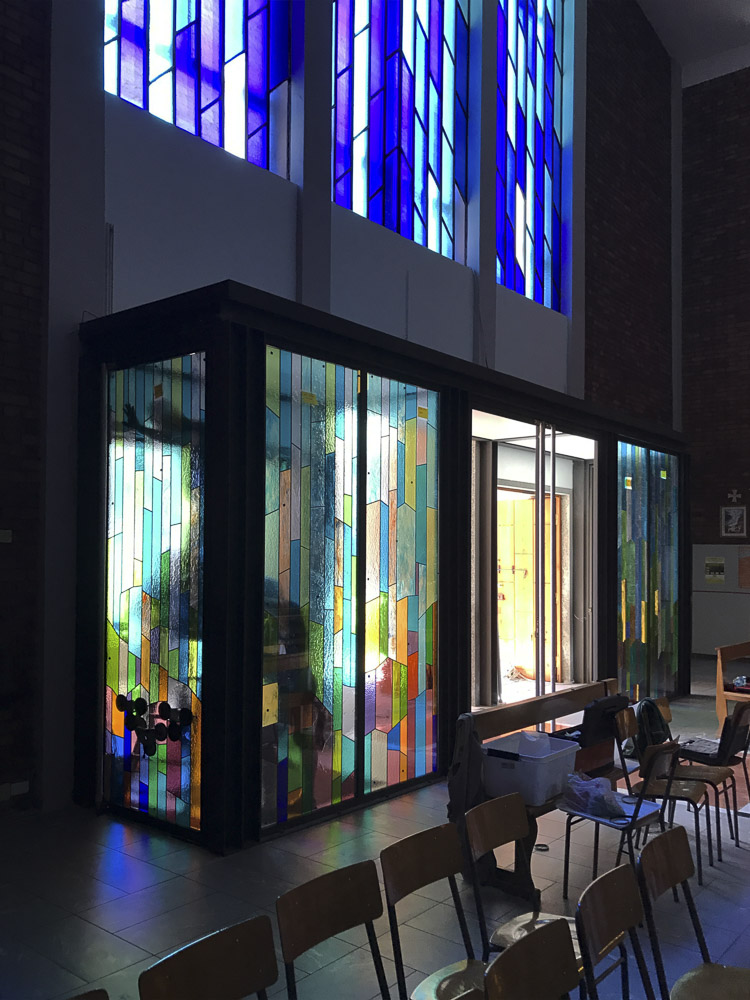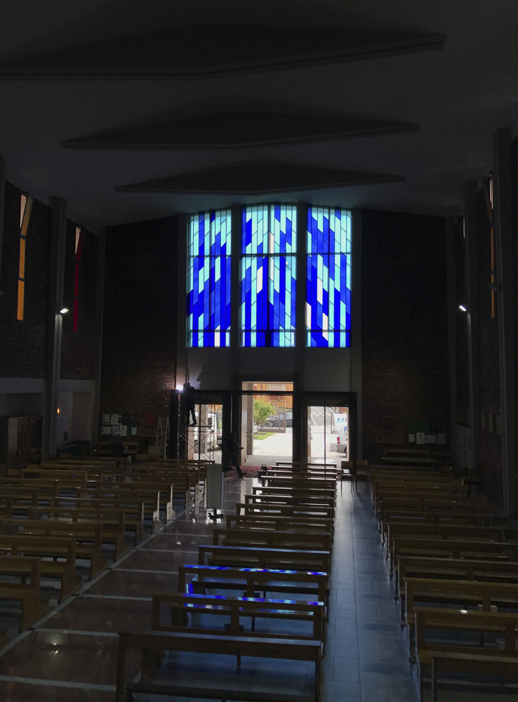 Nella vetrata a Dalles, la luce filtra attraverso i vetri ed il cemento diventa parte integrante della vetrata esaltando ulteriormente la pienezza e luminosità delle Dalles.