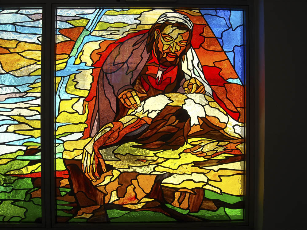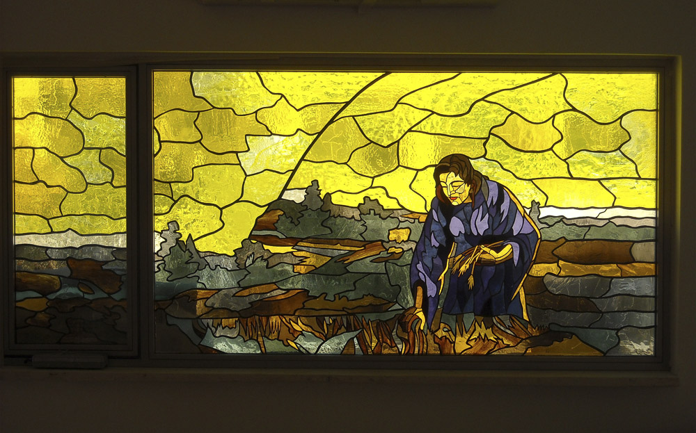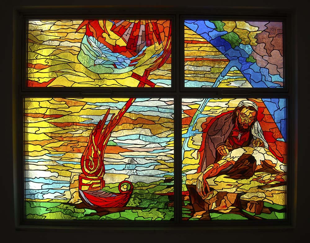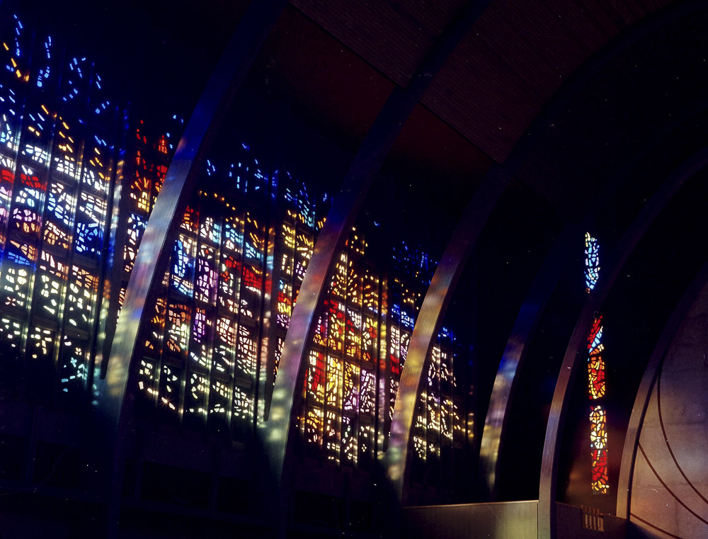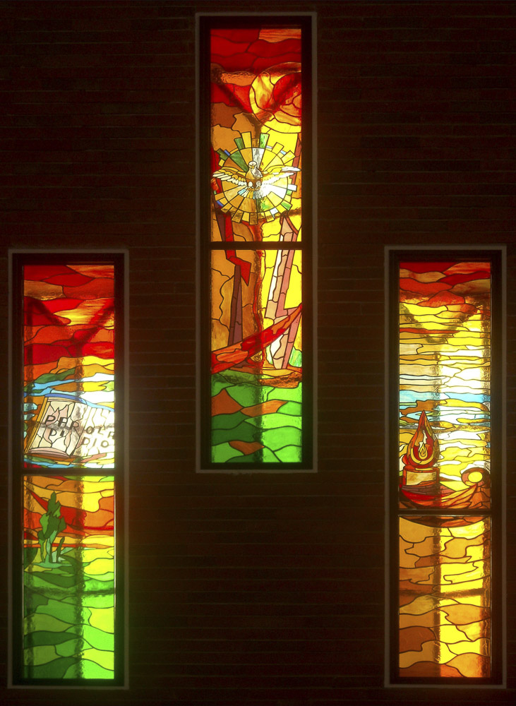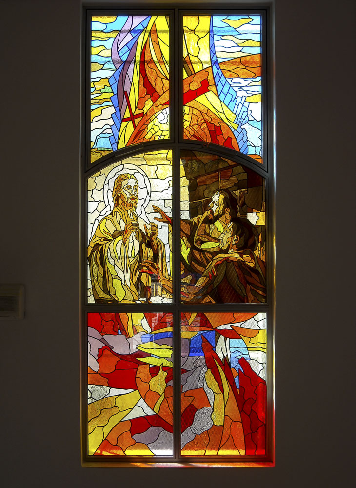 Nella vetrata a Dalles, la luce filtra attraverso i vetri ed il cemento diventa parte integrante della vetrata esaltando ulteriormente la pienezza e luminosità delle Dalles.