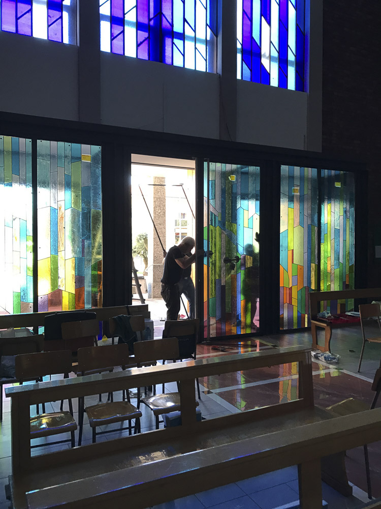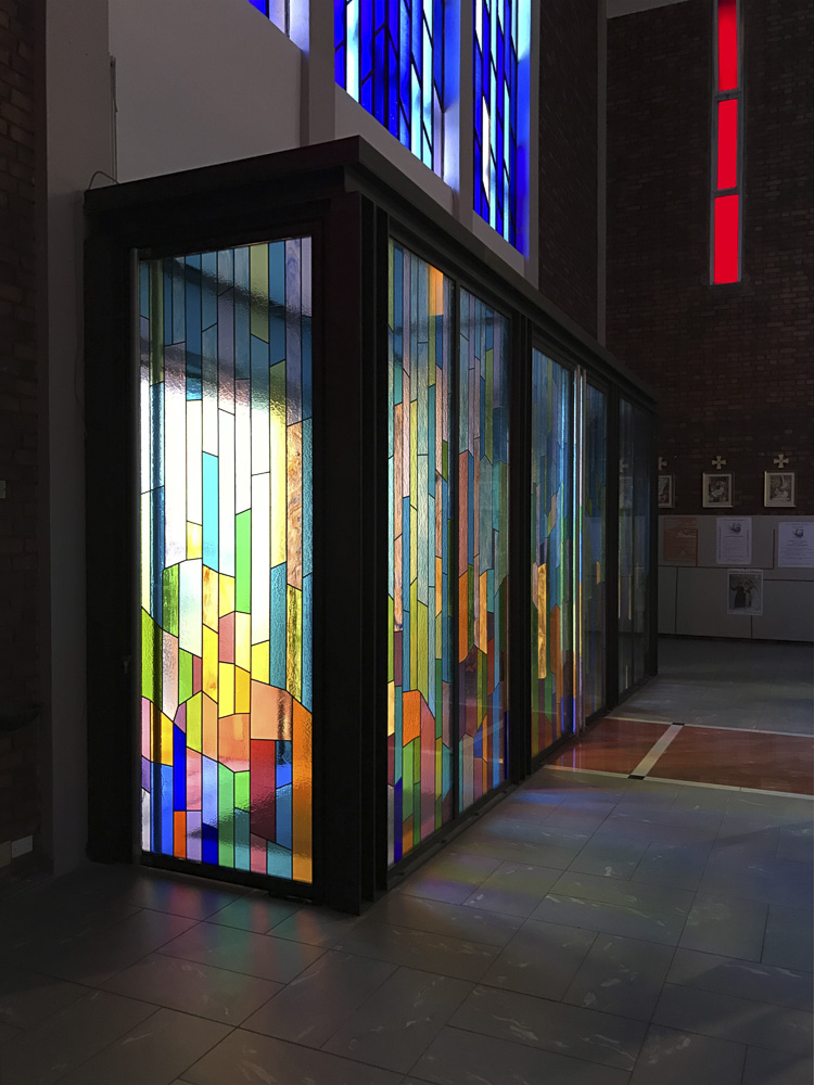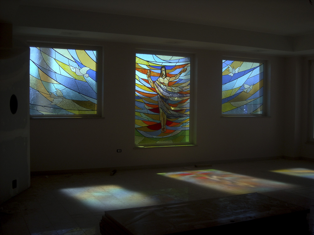 Con le nuove norme sulla sicurezza le vetrate a piombo vengono inserite in vetro camera antisfondamento, in modo tale da evitare distacchi accidentali e conferendo una protezione termica.