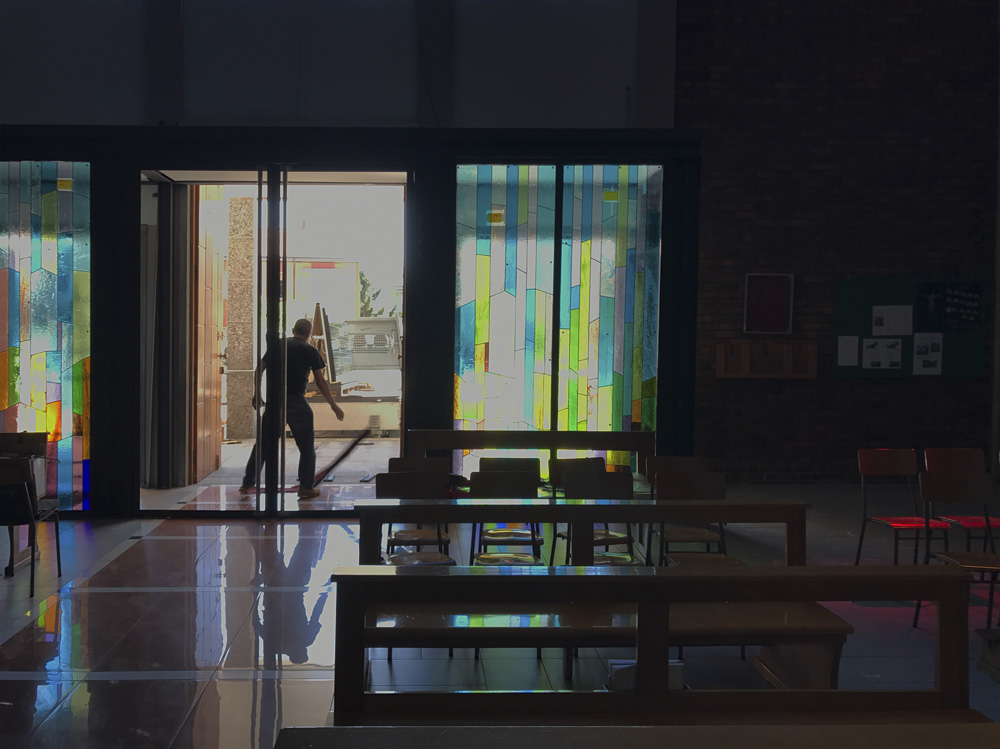 Una volta pulita su entrambi i lati si ottiene una vetrata con una resistenza superiore rispetto alle vetrate a piombo o in vetro fusione, e non necessita di vetro-camera di protezione.
